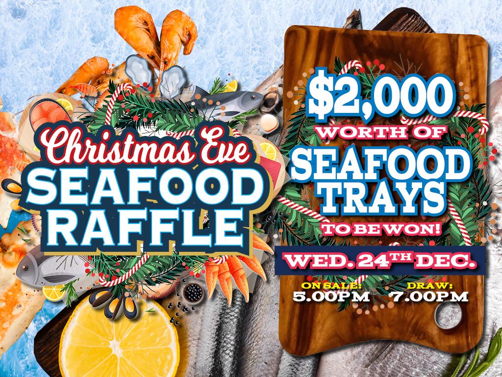 CHRISTMAS EVE SEAFOOD RAFFLE! Wednesday 24th December 2025. On sale – 5.00pm. Drawn – 7.00pm. Heaps of Seafood Platters to be won!