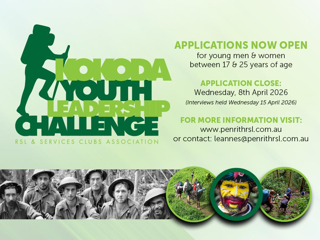 Penrith RSL Club is calling for applications for the Kokoda Youth Leadership Challenge. The program takes young community leaders on a 10 day trek across the 155km Kokoda Trail in Papua New Guinea. Overseen by the RSL & Services Clubs Association, the program is aimed at creating greater awareness among young people of the Diggers sacrifice on the Kokoda Campaign, and to ensure that traditions live on. The program also aims to instil a commitment to community service, enhancing personal development and encouraging participants to become future leaders in their own communities.